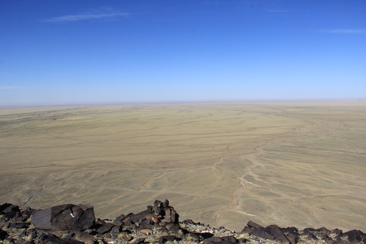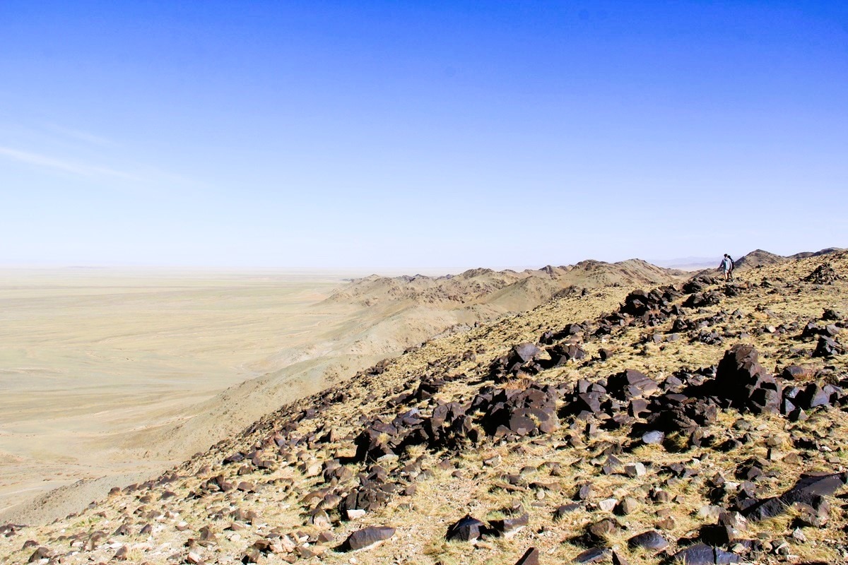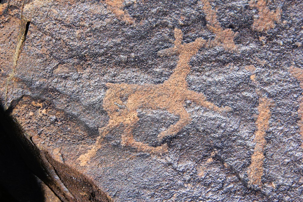 The Khavtsgait petroglyphs adorn a broad, southwest-facing sandstone slope, an ancient “Gallery” measuring roughly 1.5 by 2 meters. Over the decades, generations of artists have left their mark here, carefully carving and painting designs that reflect rich symbolic traditions. Among these remarkable rock drawings is a striking image of towering ostriches, a testament to the unique and imaginative vision of the people who created them.