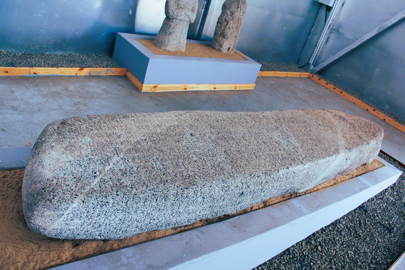 The size and structure of these tombs depended on the rank of the deceased. Usually, they were square with vertical stone walls. Stones were erected in front of the tombs and up to nearby mountains. These stones symbolized the participation of those attending the funeral.